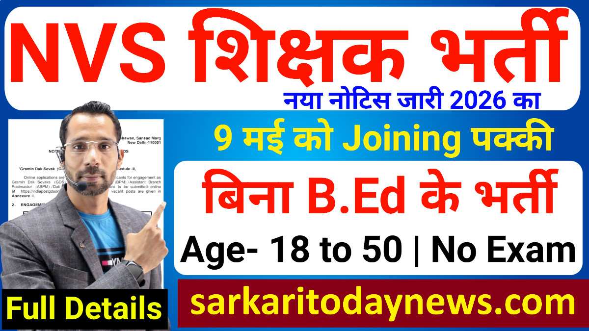 NVS Teacher Recruitment 2026 – Notification Out for PGT,TGT & Other Posts, all the people of India can apply for it, a great opportunity has come up for both men and women, how to apply, how much salary will you get in this and what is your age limit in this, so definitely fill its form, interested candidates read the full notification before filling the form, you will get complete information about how to fill the form here, let us tell you that if you want to do a job in Navodaya Vidyalaya Samiti (NVS), then a great opportunity has come up for you, in 2025, there is a great opportunity for those who want to do a government job, recruitment has come out for all the states of India, you can be posted in your state itself. Update by Sarkari Today News